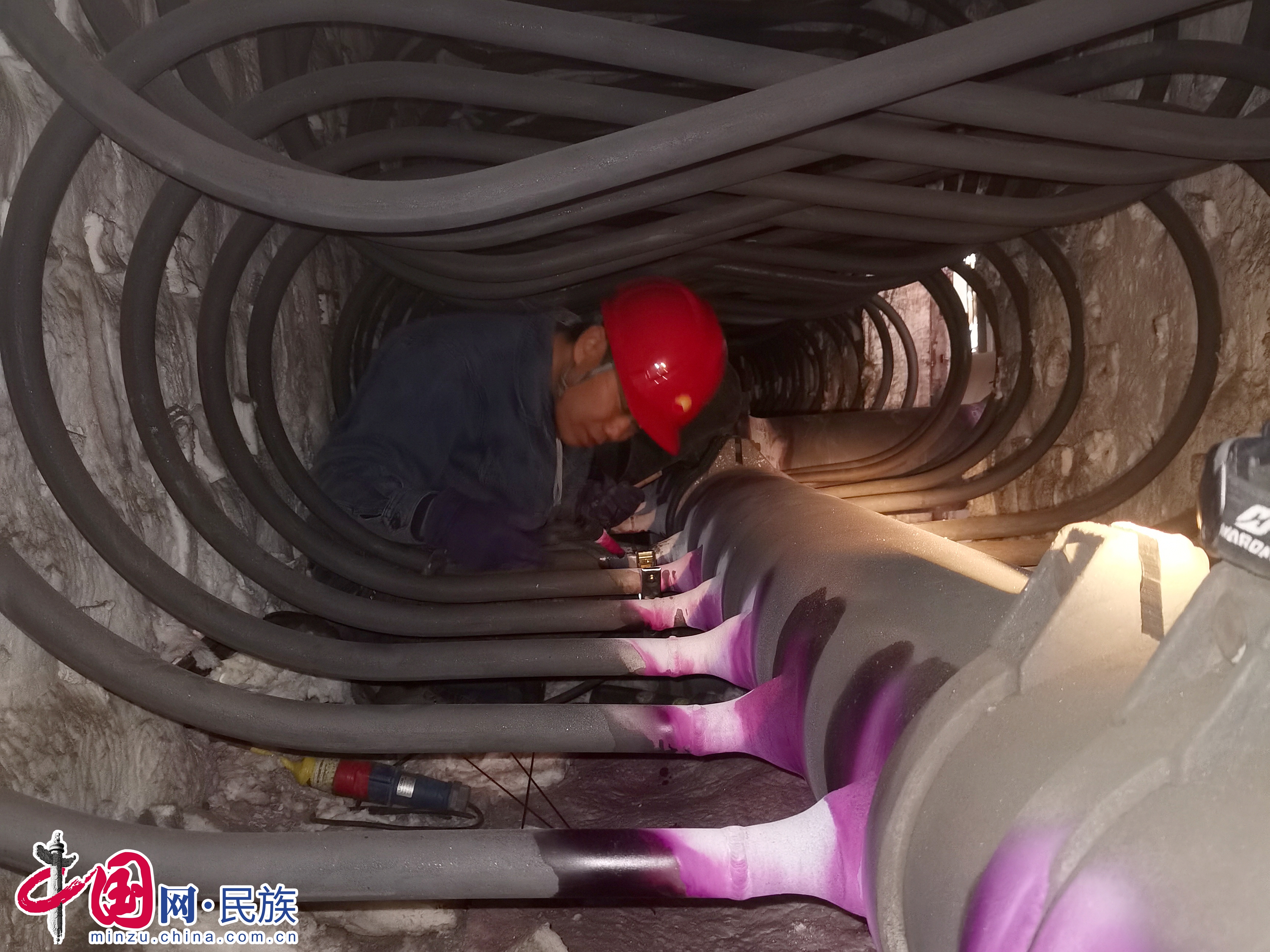 在狹小空間進(jìn)行焊接作業(yè)的楊永磊。受訪者本人供圖
