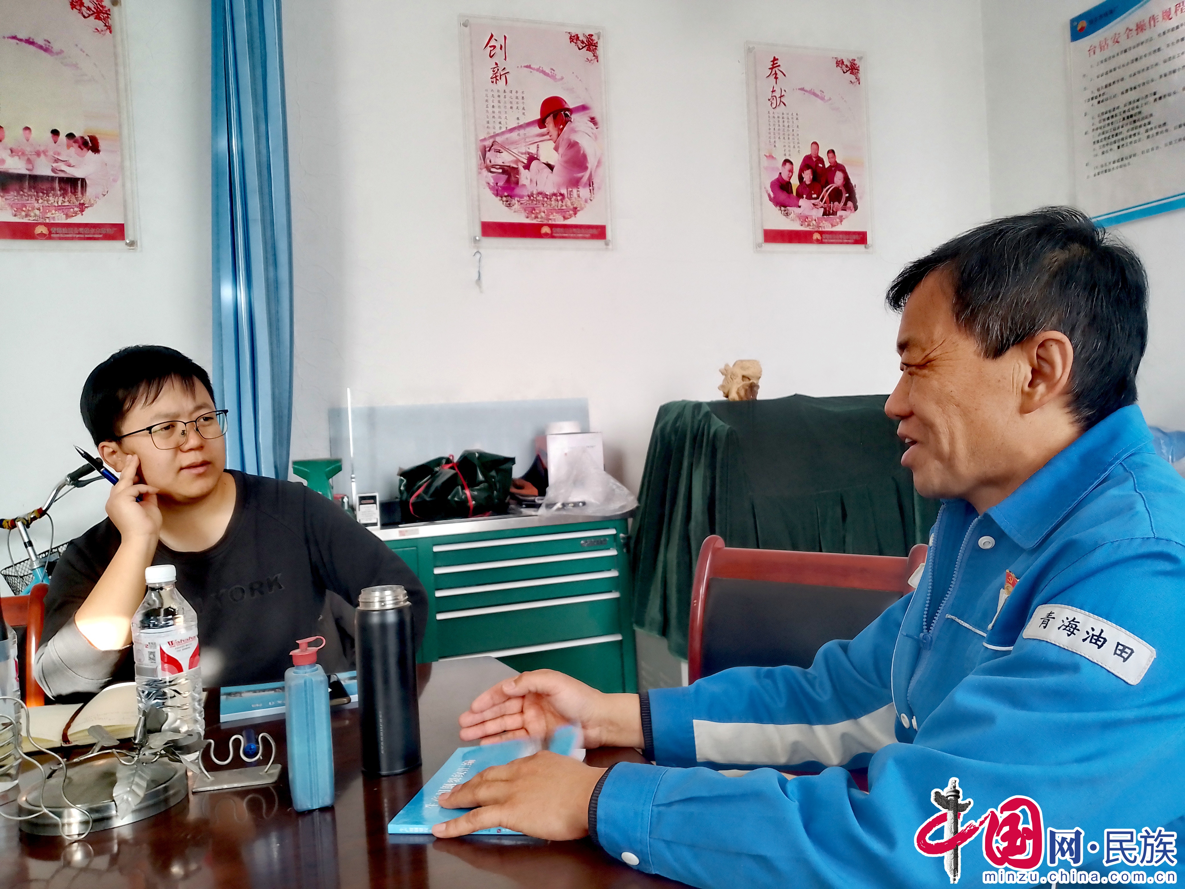 楊永磊(右)在講述往昔經(jīng)歷。蔡得軍攝