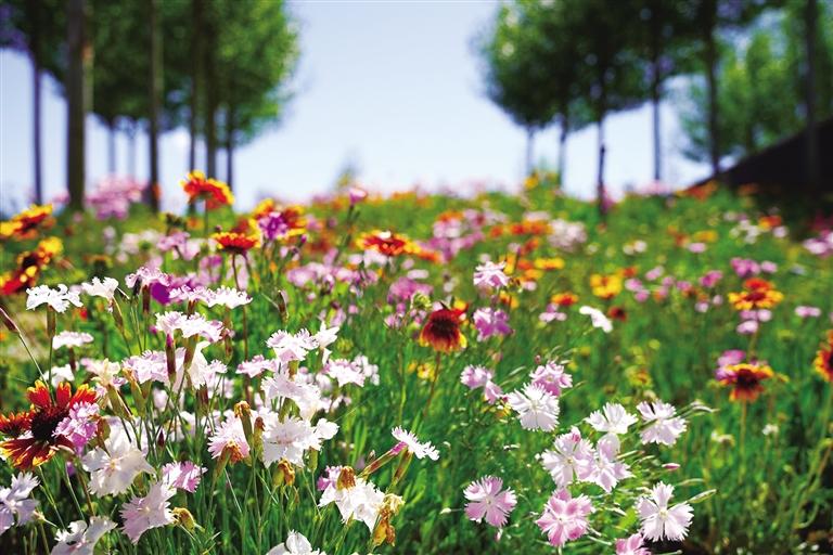 六月的拉薩,陽光正好。澄澈藍(lán)天如洗,高遠(yuǎn)而明亮。柳梧大橋下的濱河公園,河畔草地鋪滿各色小花,紅的明艷、粉的柔和、紫的淡雅,肆意綻放在綠意間,仿佛步入印象派大師莫奈的畫布之中。成片盛開的各類花卉爭奇斗艷,五彩斑斕的花朵沿著河畔鋪展開來,形成一片片絢麗的花海。不同顏色的花朵相互交織,隨風(fēng)搖曳,與藍(lán)天白云、碧綠的河水、遠(yuǎn)處綠意盎然的南山相映成趣,構(gòu)成了一幅花海畫卷。