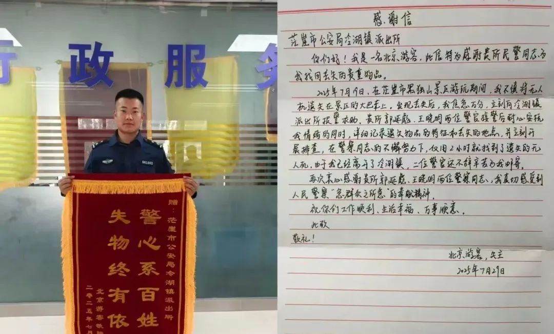 發(fā)布時(shí)間:2025-08-08 09:12:59 | 來(lái)源:中國(guó)網(wǎng) | 作者: | 責(zé)任編輯:孫玥近日,青海省海西蒙古族藏族自治州茫崖市公安局冷湖派出所收到北京游客李先生寄來(lái)的一面印有“警心系百姓 失物終有依”的錦旗和一封感情真摯的感謝信,對(duì)茫崖公安民警的暖心幫助表示感謝,彰顯了濃濃的警民魚(yú)水情。